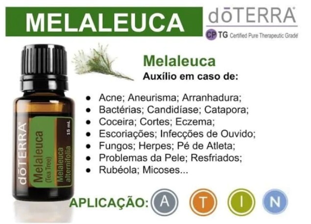 O óleo essencial de tea tree é indicado contra micoses de unha, aftas, dores de dente, dores de ouvido, psoríase, frieiras, calos, furúnculos, herpes e no tratamento da acne.