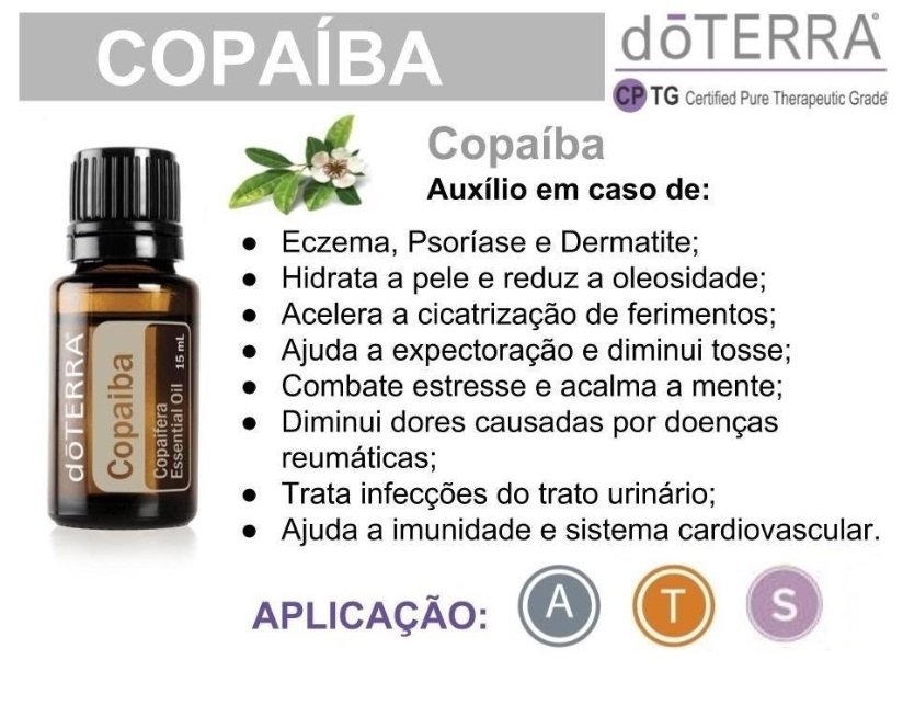 - Adicione 1 ou 2 gotas do óleo de Copaíba à água, sumo ou chá para apoiar os sistemas cardiovascular, imunitário, nervoso e digestivo.