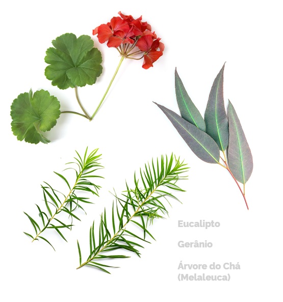 - Os óleos essenciais de Árvore do Chá, Eucalipto, Gerânio, Litsea e Cânfora atuam em conjunto para limpar e purificar a pele