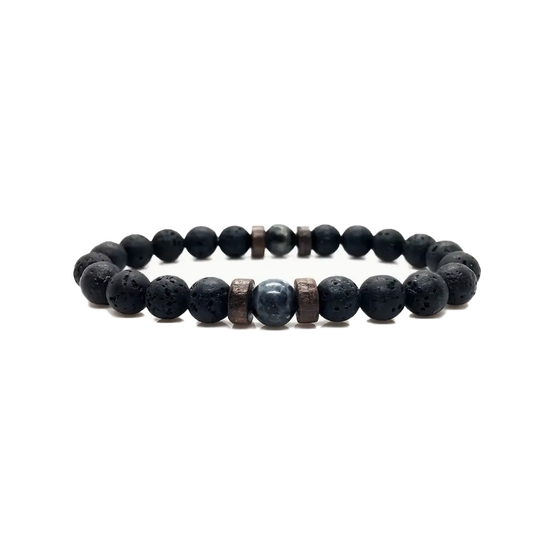 LavaMaterial: Feitas com contas de pedra vulcânica.